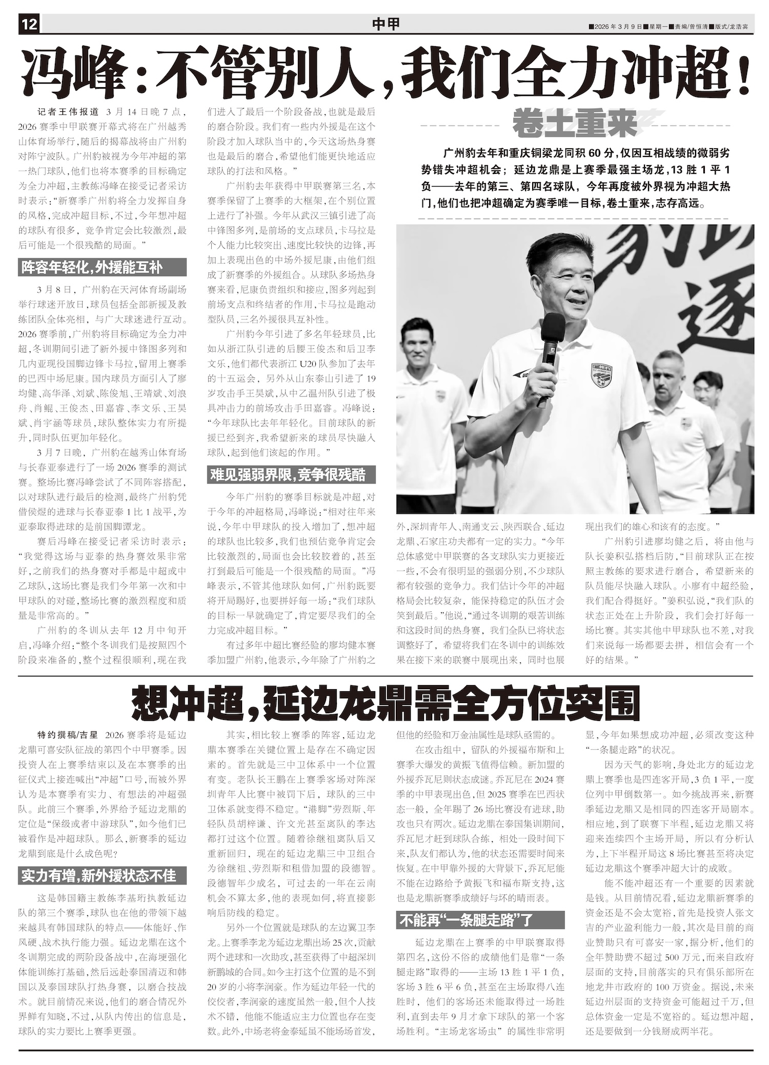 冯峰:不管别人,我们全力冲超!
