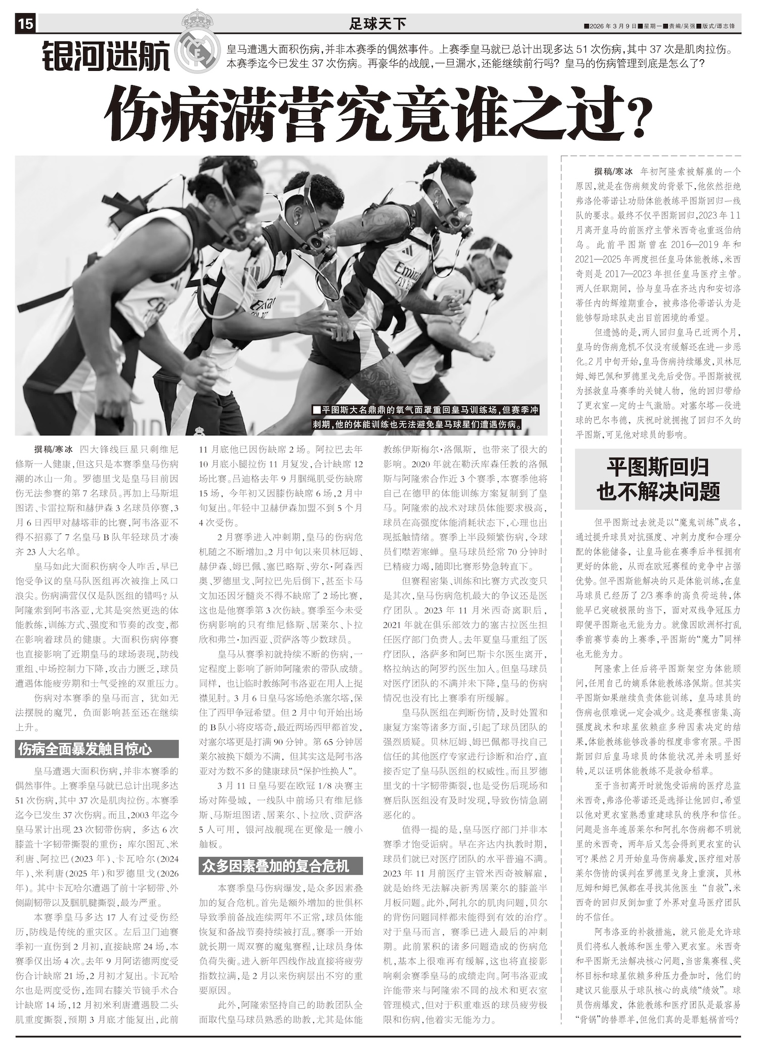 年初阿隆索被解雇的一个原因,就是在伤病频发的背景下,他依然拒绝弗洛伦蒂诺让功勋体能教练平图斯回归一线...