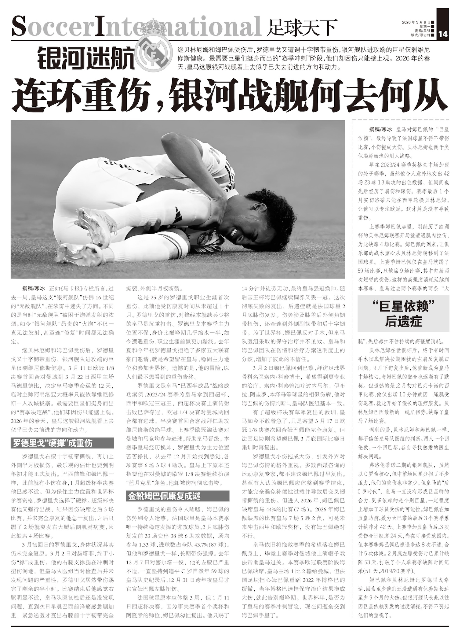 银河迷航继贝林厄姆和姆巴佩受伤后,罗德里戈又遭遇十字韧带重伤,银河舰队进攻端的巨星仅剩维尼修斯健康。...