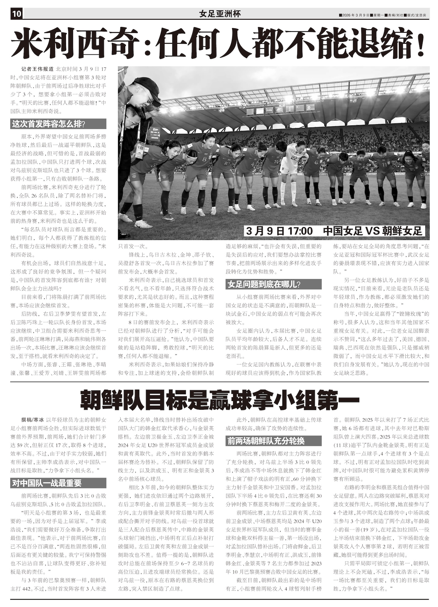 北京时间3月9日17时,中国女足将在亚洲杯小组赛第3轮对阵朝鲜队,由于前两场过后净胜球比对手少了3个...