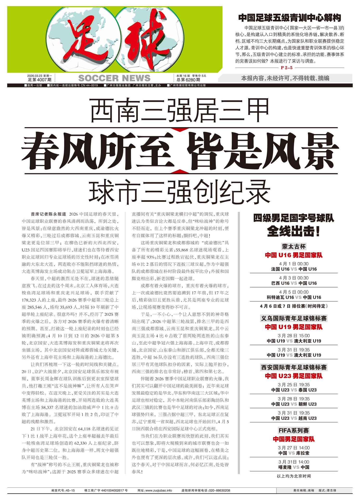 2026中国足球的春天里,中国足球职业联赛的春风清冽而浩荡,所到之处,皆是风景:在绿意盎然的大西南重...