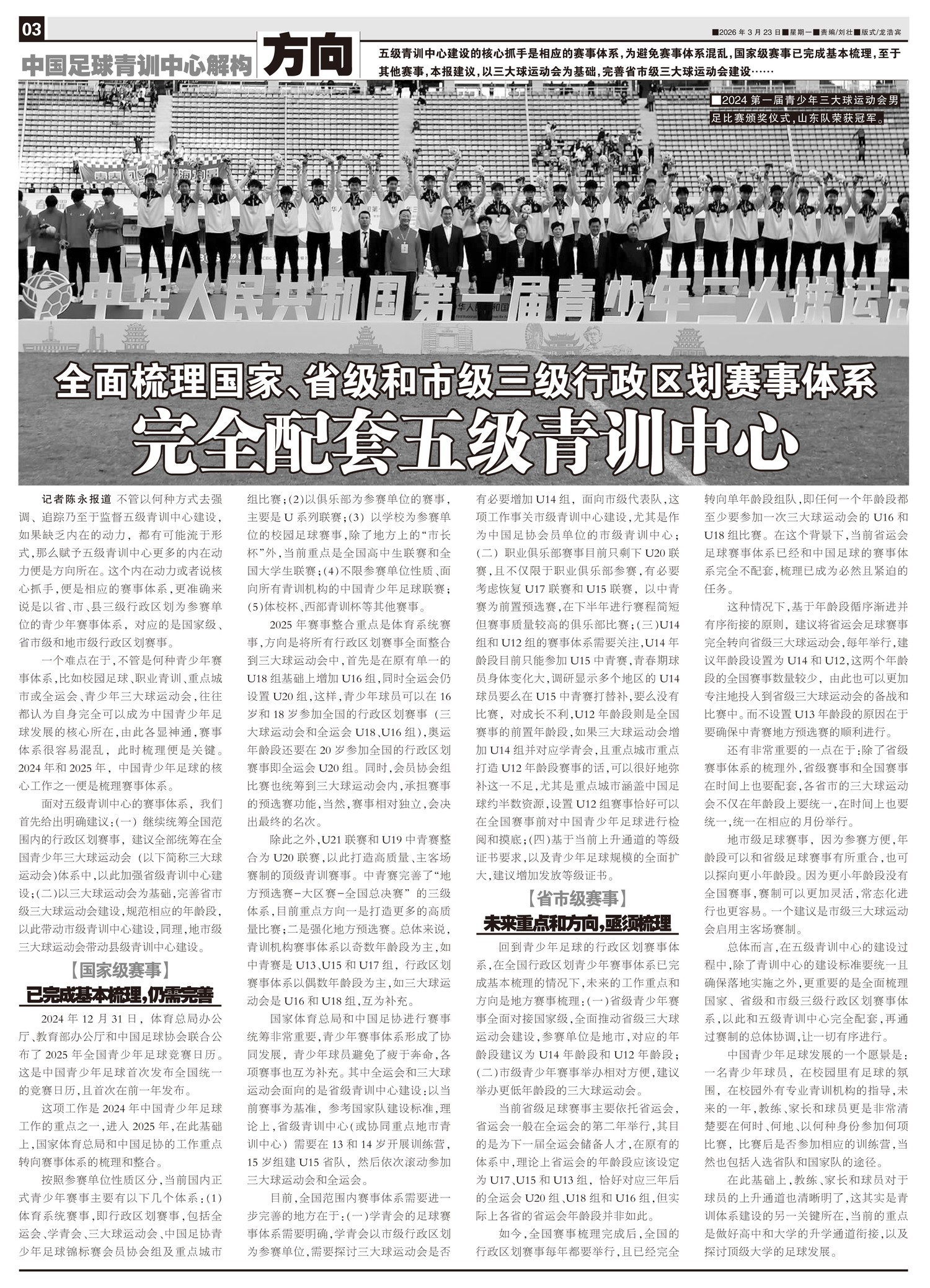全面梳理国家、省级和市级三级行政区划赛事体系 完全配套五级青训中心