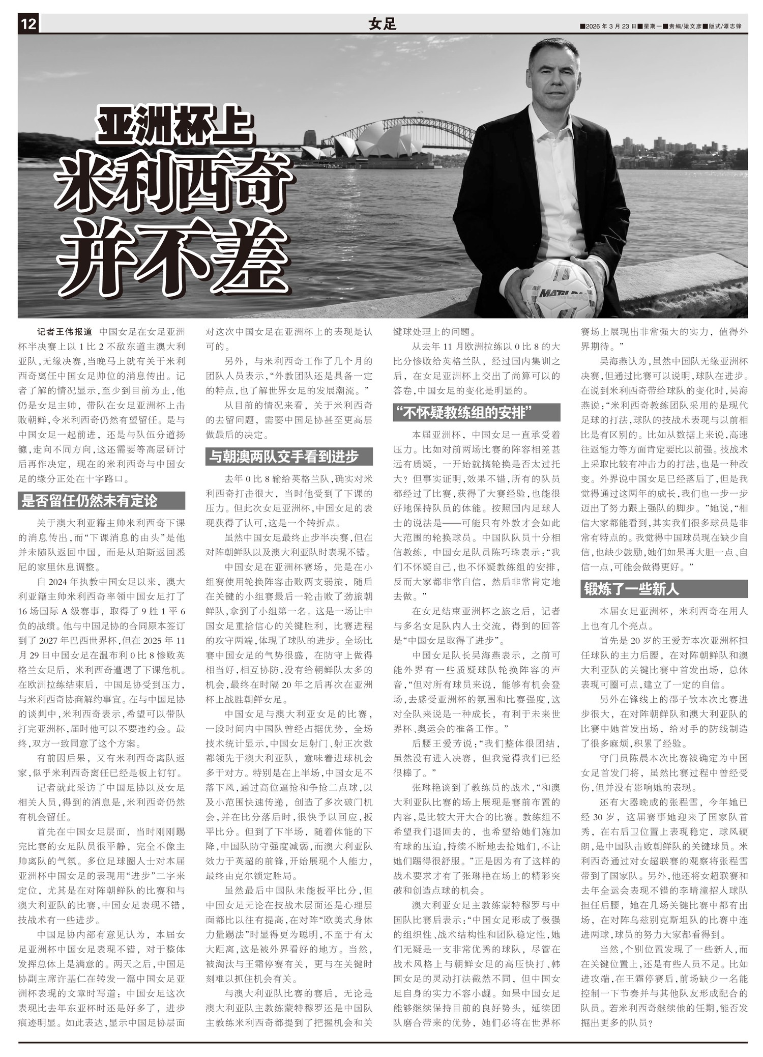 中国女足在女足亚洲杯半决赛上以1比2不敌东道主澳大利亚队,无缘决赛,当晚马上就有关于米利西奇离任中国...