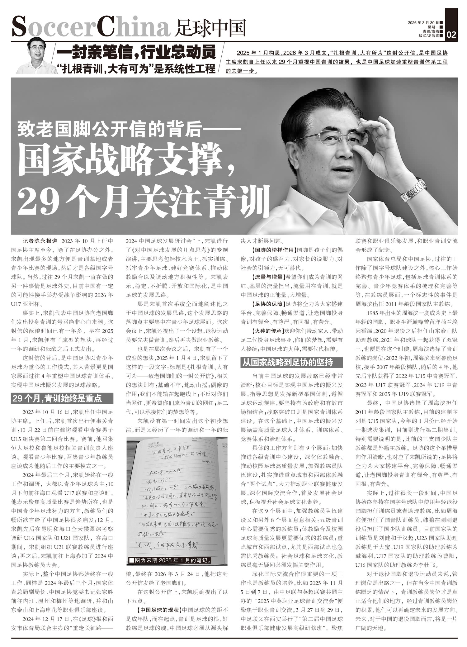 2025年1月构思,2026年3月成文,“扎根青训,大有所为”这封公开信,是中国足协主席宋凯自上任以...