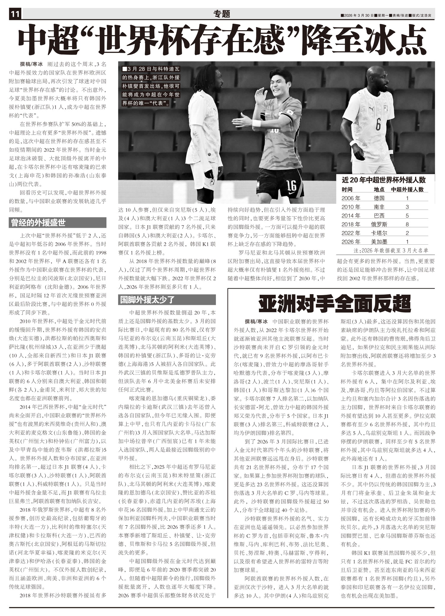 中超“世界杯存在感”降至冰点