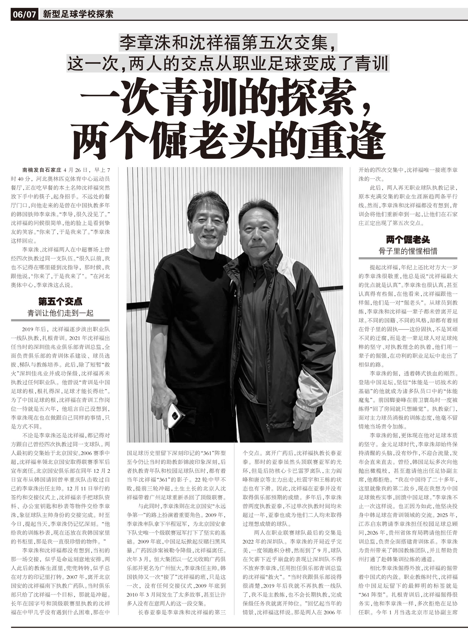 李章洙和沈祥福第五次交集,这一次,两人的交点从职业足球变成了青训