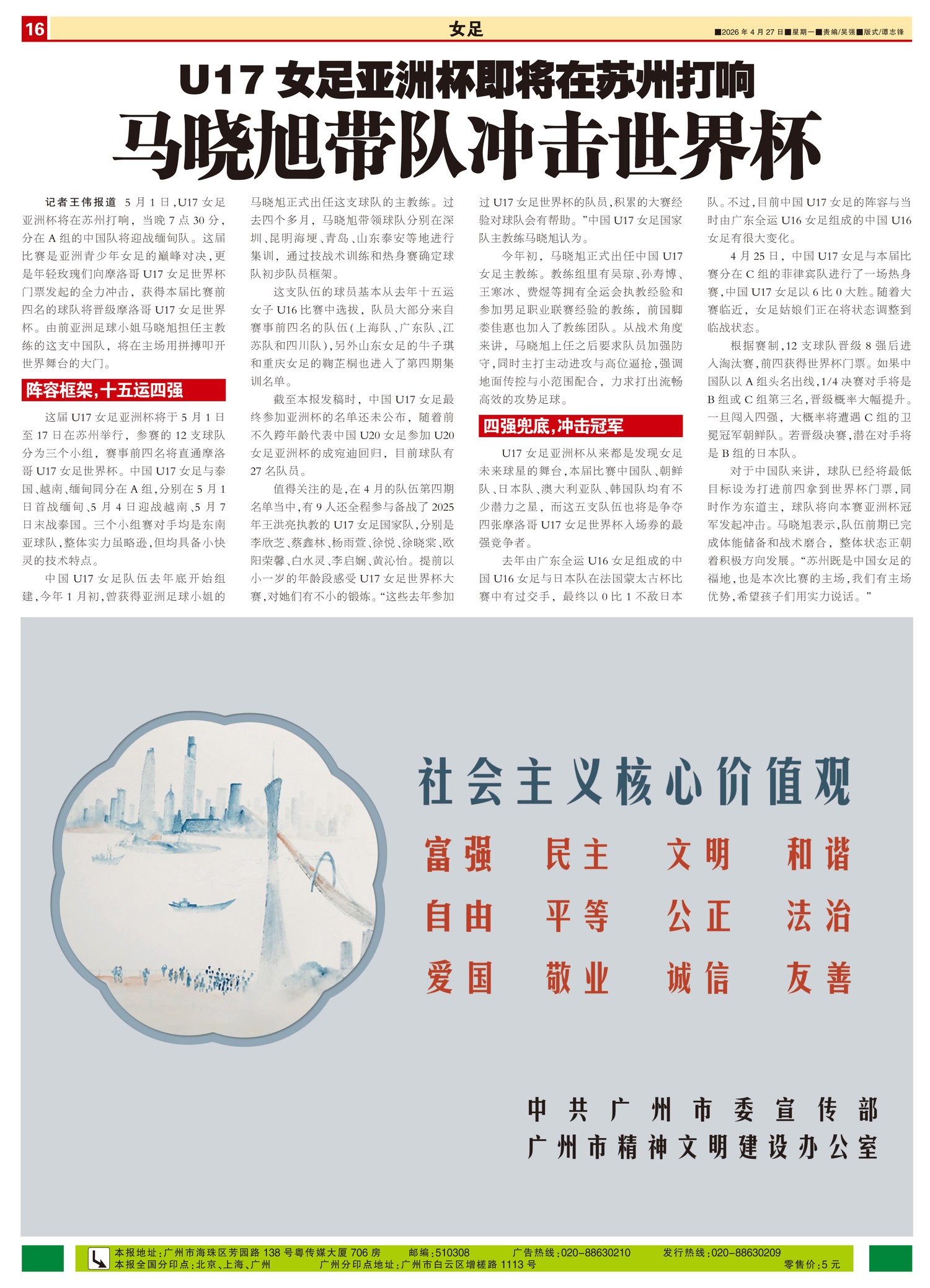 U17女足亚洲杯即将在苏州打响 马晓旭带队冲击世界杯
